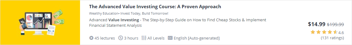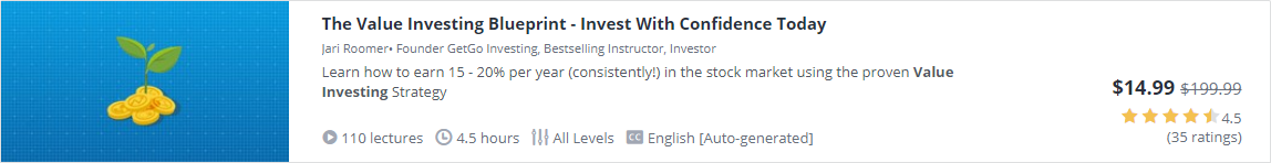 In this post, I want to share some of the top courses on Udemy in the Value Investing category. Most of the time, these courses are offered at 75% to 95% OFF so grab them when you get the chance!